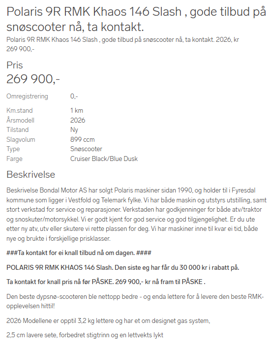 Snøscooter Påsketilbud 2026
