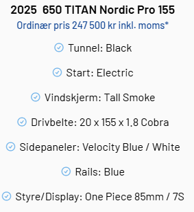 Demokjørt 2025 Polaris 650 Titan Nordic Pro 155 gått 287 Km og 13,8 Timar